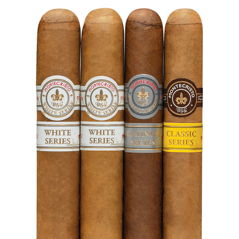 The Montecristo The Full Monte Fresh Loc 4 Cigar Sampler is a delightful gathering of four of the prestigious brand's best lines, all awaiting to be enjoyed by either seasoned smokers or the curious newbie looking to expand their palate. Truly offering something for everyone, this exciting sampler ranges from light and creamy, to rich and robust, along with everything in-between. Includes: (Montecristo White (2)